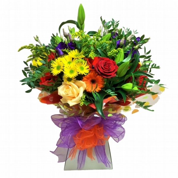 Abundance Aqua Box £55.00 Options Standard Large (25 percent extra) +£11.00 Extra Large (50 percent extra) +£22.00 Add to Basket SKU: AAB01 This magnificent hand tied design contains a rainbow of colours and features premium roses, lilies, lisianthus, gerbera and solidago with mixed foliage beautifully presented in an aqua box finished with colour coordinated luxury voile ribbon. Message: Alternative Products Rainbow Aqua Box £65.00 Buy Info