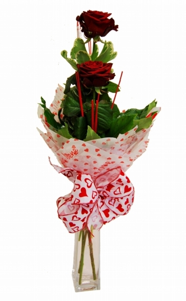 This contemporary Valentines gift simply says "I love you". Premium red roses with quality coordinating foliage all wrapped up in Valentines cellophane with a luxurious ribbon bow.