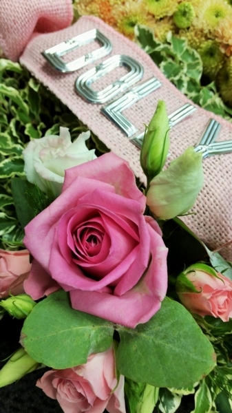 Dog Lover's Tribute £65.00 Add to Basket SKU: ID15 This charming posy pad contains a bed of pittosporum leaves with a bone of santini chrysanthemum enhanced with placements of Aqua roses, spray roses and lisianthus. Message: