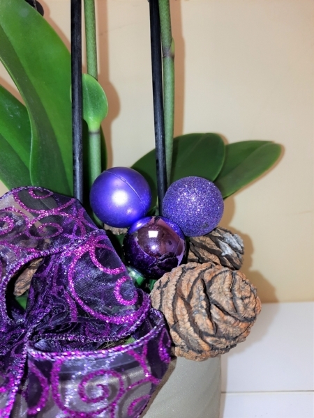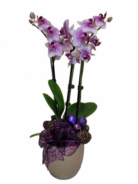 Festive Orchid Plant £25.00 Add to Basket SKU: FOP01 This quality phalaenopsis orchid plant is decorated ready for Christmas and includes a coordinating plant pot. (Pot design may vary) Message: