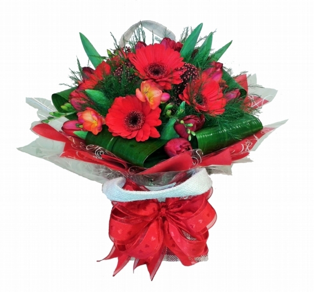 Forever Love Aqua Bag £38.50 Options Standard Add to Basket SKU: FLAB01 This charming hand tied aqua bag contains quality gerbera, tulips, freesia and skimmia with coordinating foliage and an aspidistra collar in a coordinating bag with a pretty red heart bow. Message: Customers Also Bought Large cream teddy £9.50 Buy Info