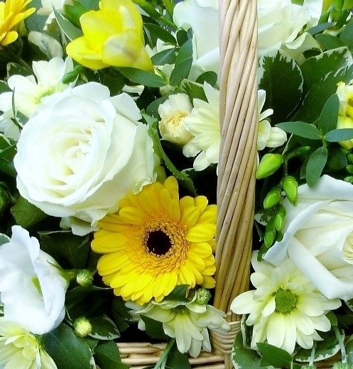 Goldilocks Basket £50.00 Add to Basket SKU: GB01 A delightful basket containing premium roses, germini, carnation, freesia, lisianthus and spray carnations & chrysanthemums with mixed foliage. Message: