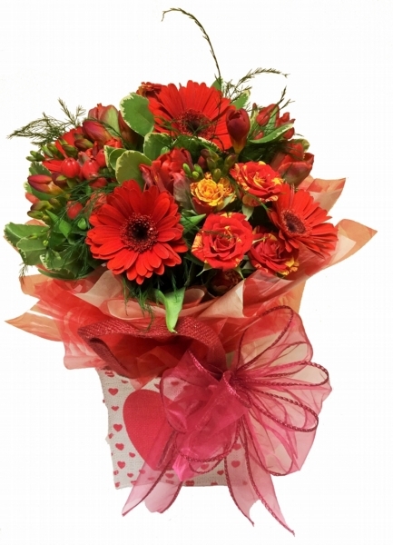 Hearts and Flowers Aqua Bag £36.50 Add to Basket SKU: HAFAB01 This pretty hand tied aqua bag contains gerbera, tulips, spray roses, freesia and hypericum with coordinating foliage and a voile bow in a coordinating heart bag. Message: Alternative Products Forever Love Aqua Bag £38.50 Buy Info With a Twist Aqua Box £45.00 Buy Info