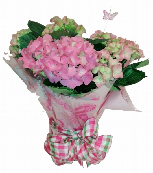 Hydrangea Plant £25.00 Add to Basket SKU: HP01 A striking hydrangea plant gift wrapped and enhanced with it's own glittering butterfly. (Flower colour may vary) Message: Customers Also Bought Mixed balloons £4.50 Buy Info