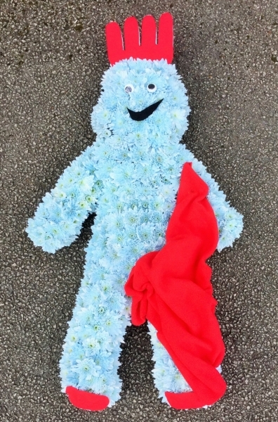 Igglepiggle £195.00 Add to Basket SKU: ID21 A unique design featuring the "In the Night Garden" character created using based double chrysanthemums with red material accessories, measuring approximately 36 inches (90 cm) in length. Message: