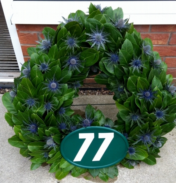 Laurel Wreath £75.00 Add to Basket SKU: ID10 This classic tribute contains laurel leaves with eryngiums, measuring approximately 18 inches (45 cm) in height. Message: