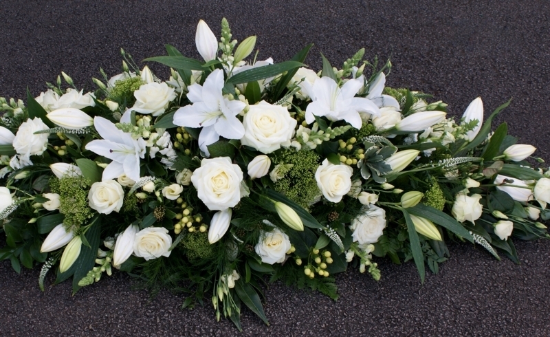 Lily and Rose Double Ended Spray £0.00 Options 3 foot £225.00 4 foot (as shown in picture) £275.00 5 foot £325.00 6 foot £375.00 Add to Basket SKU: DE2 This memorable double ended spray contains oriental lilies, premium roses, snapdragons, hypericum, tachelium and lisianthus with coordinating foliage, measuring approximately 48 inches (120 cm) in length. Message: