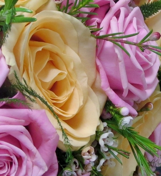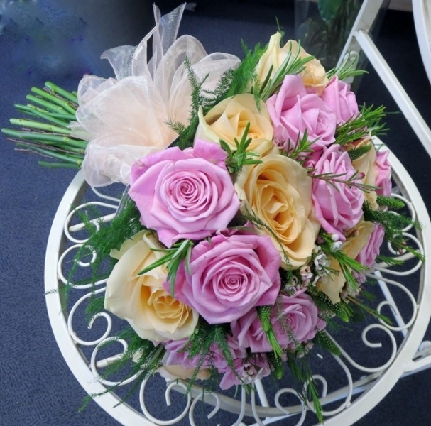 Memorial Hand Tied Bouquet £80.00 Add to Basket SKU: ID11 This exquisite replica wedding bouquet contains premium roses with mixed foliage completed with a voile bow, measuring approximately 15 inches (37 cm) in height. Message: