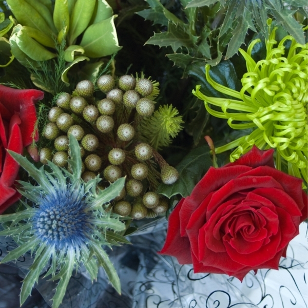 Red Elegance Aqua Box £69.50 Options Standard Large (25% extra) +£14.00 Extra Large (50% extra) +£28.00 Add to Basket SKU: REAB01 A gorgeous hand tied aqua box containing premium roses, chrysanthemum blooms, brunia and eryngium with coordinating foliage in a silver box and striking voile bow. This presentation bouquet could be ideal as a Ruby Wedding Anniversary gift. Message: Alternative Products Amore Bouquet £75.00 Buy Info