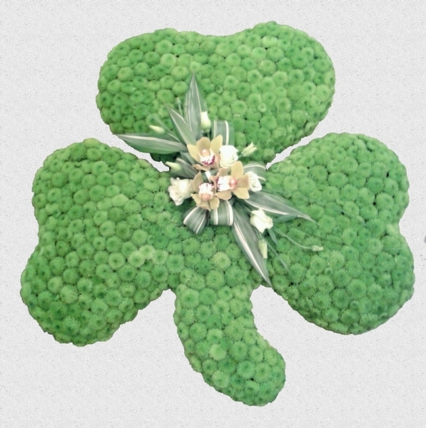 Shamrock £160.00 Add to Basket SKU: ID14 This outstanding tribute is based with santini chrysanthemum and features a contemporary spray containing cymbidium orchids and lisianthus with dracaena and bear grass, measuring approximately 24 inches (60 cm) in width. Message: