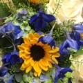 My bright and beautiful centre piece contained sunflowers, delphiniums, premium roses, hydrangea and million bells.