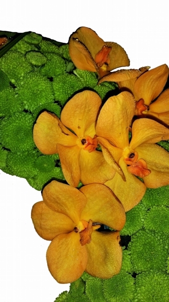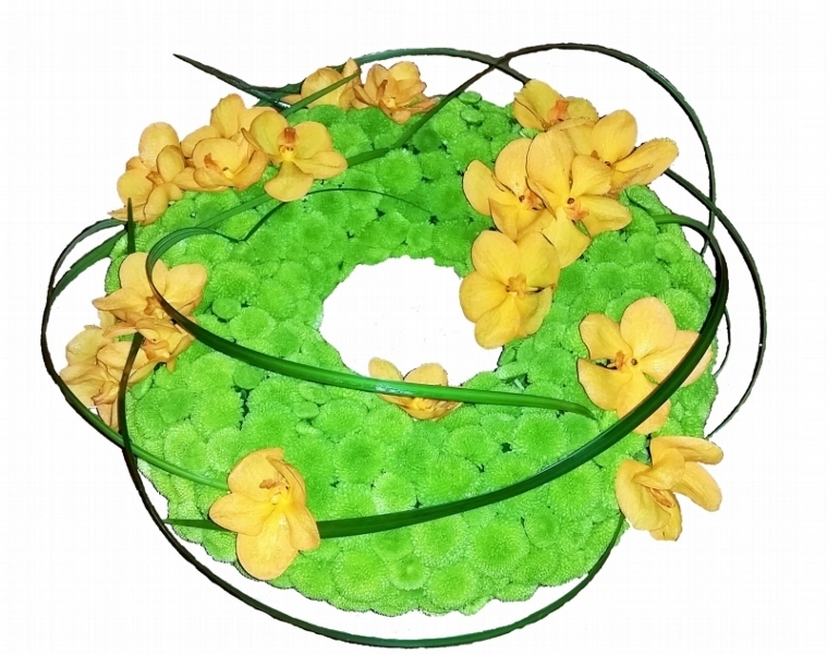 Vanda Orchid Wreath £130.00 Add to Basket SKU: W10 This contemporary wreath contains vanda orchids, feeling green chrysanthemums and lily grass, measuring approximately 15 inches (37 cm) in diameter. Message: