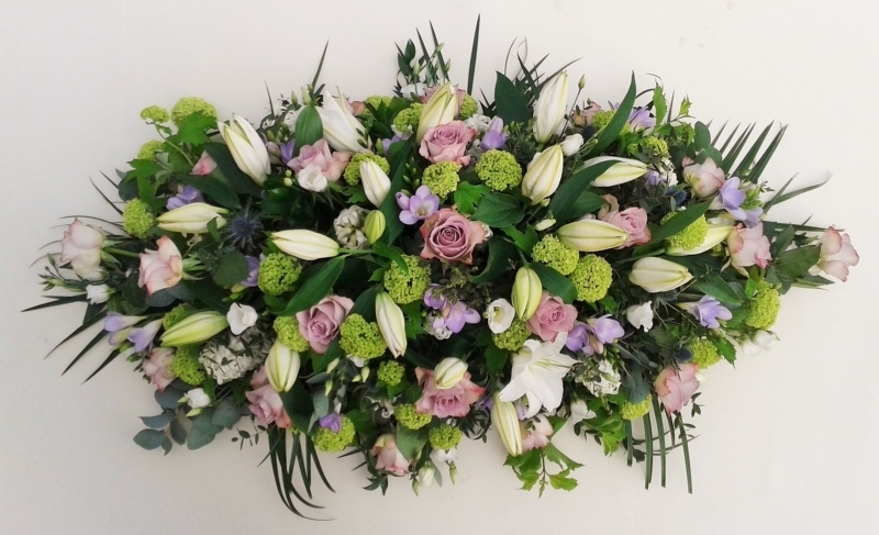 Vintage Double Ended Spray £0.00 Options 3 foot £225.00 4 foot (as shown in picture) £295.00 5 foot £370.00 6 foot £445.00 Add to Basket SKU: DE23 This charming double ended spray contains premium roses, lilies, viburnum, freesia and lisianthus together with coordinating foliage, measuring approximately 48 inches (120 cm) in length. Message: