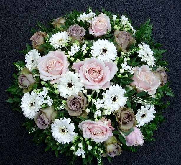 Vintage Posy Pad £95.00 Add to Basket SKU: P05 A charming posy pad containing mixed premium roses, bouvardia, germini and veronica with coordinating foliage, measuring 18 inches (45 cm) in diameter. Message: