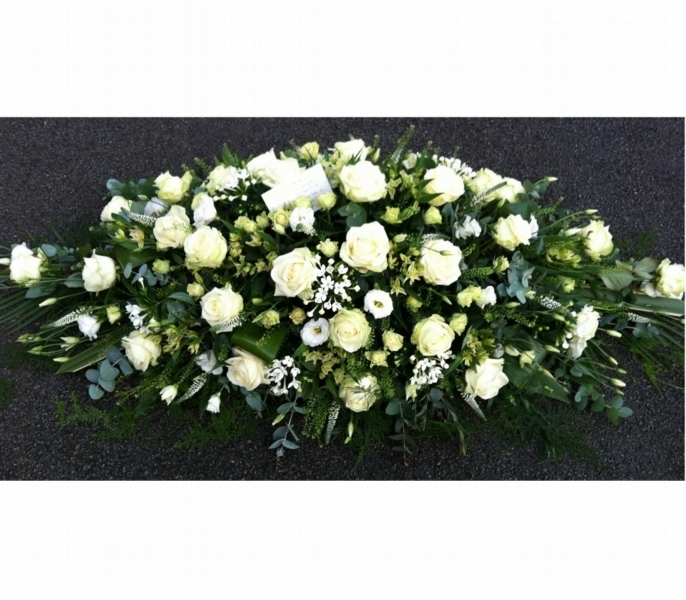 White and Cream Double Ended Spray £0.00 Options 3 foot £180.00 4 foot £240.00 5 foot (as shown in picture) £300.00 6 foot £360.00 Add to Basket SKU: DE24 A large classic double ended spray containing premium roses, bouvardia, lisianthus and veronica with mixed foliage, measuring approximately 60 inches (150 cm) in length. Message: