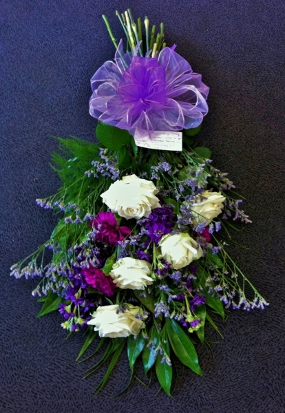 White and Lilac Sheaf £0.00 Options 2 foot (as shown in picture) £45.00 2.5 foot £60.00 3 foot £70.00 Add to Basket SKU: SF39 This attractive sheaf contains premiums roses, carnations, stocks and limonium with mixed foliage and a voile bow, measuring 24 inches (60 cm) in length. Message: