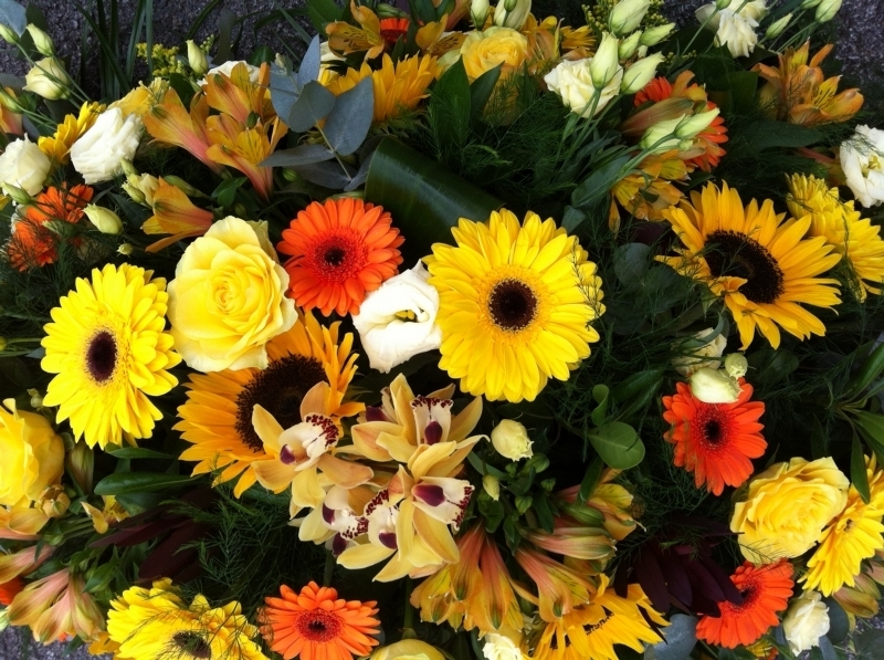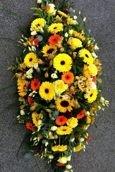 Yellow Double Ended Spray £0.00 Options 3 foot £195.00 4 foot £260.00 5 foot (as shown in picture) £325.00 6 foot £390.00 Add to Basket SKU: DE28 This splendid double ended spray contains sunflowers, gerbera, premium roses, alstroemeria, cymbidium orchids and lisianthus together with coordinating foliage, measuring approximately 60 inches (150 cm) in length. Message: